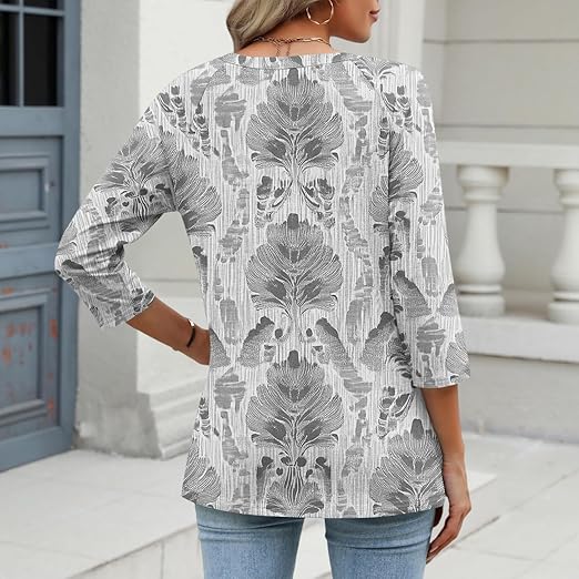 Blouses for Women Gym Clothes Womans 3/4 Length Sleeve Tops Beach Vacation Clothing Trendy Boho Shirts