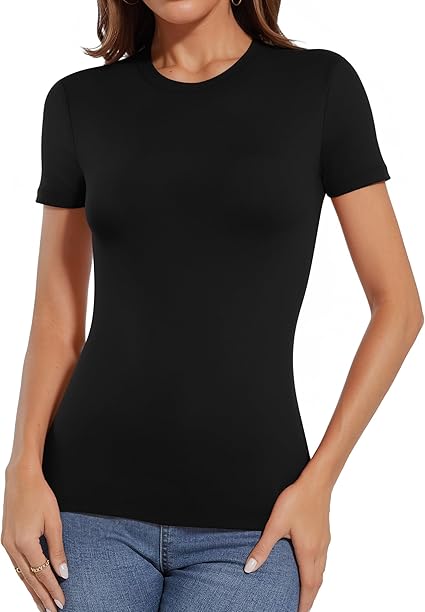 Women Crew Neck Short Sleeve Fitted Stretchy Summer Basic Tops T Shirts 2024