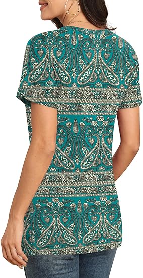 【 Features 】This tunic features a classic design with a crew neck and short sleeves. The three buttons on the lower left corner add a stylish touch to the top, which can help slim down a woman's figure.