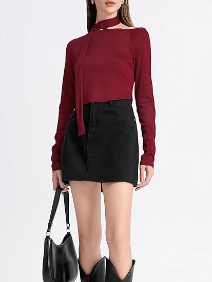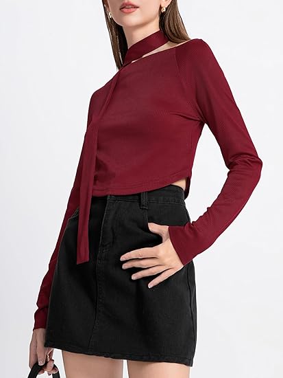Features: This crop tops for women adopts boat neck design, which is very flattering to the neck line. The irregular hem design makes the waistline look slimmer. It has a long neck strap that can be tied around the neck, making the simple tops look more elegant and stylish.